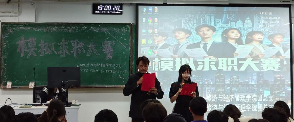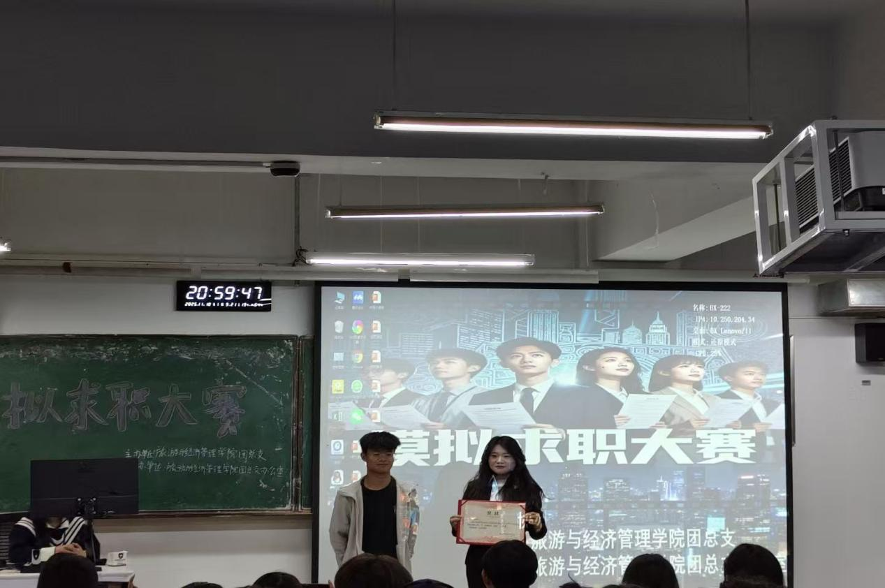 为全面提升学生的职业素养与就业竞争力,搭建理论与实践结合的锻炼平台,2025年11月10日,旅游与经济管理学院在博学楼222教室成功举办了“展职业风采 塑未来精英”模拟求职大赛。本次大赛吸引了学院各年级20余名学子踊跃报名,经过初赛筛选,最终有10名选手脱颖而出,会师决赛。