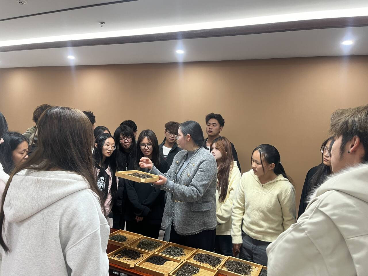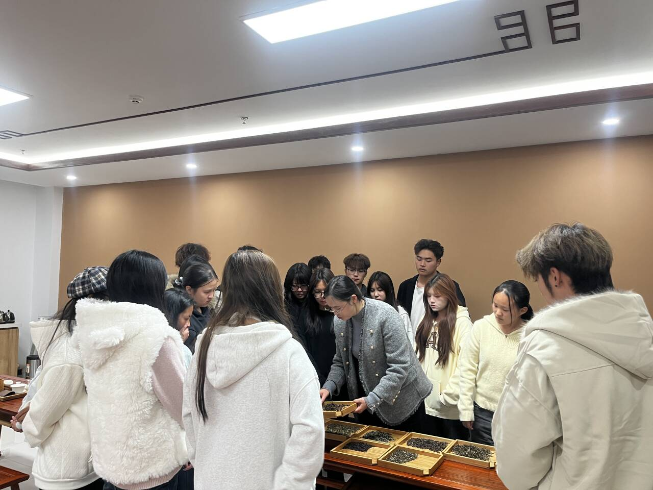 理论知识的夯实是为了更好地指导实践。在随后的“识茶”环节,张老师精心准备了炒青绿茶、烘青绿茶、晒青绿茶、滇红、白牡丹、安溪铁观音、武夷岩茶、君山银针、普洱熟茶、茉莉花茶等十款具有代表性的名茶。成员们通过观察干茶的形状、色泽、香气,品鉴茶汤的滋味与叶底的形态,将抽象的理论知识与具体的茶叶实物一一对应,在实践中锻炼了眼力与嗅觉,真切感受到了中国茶品的千姿百态与无穷韵味。