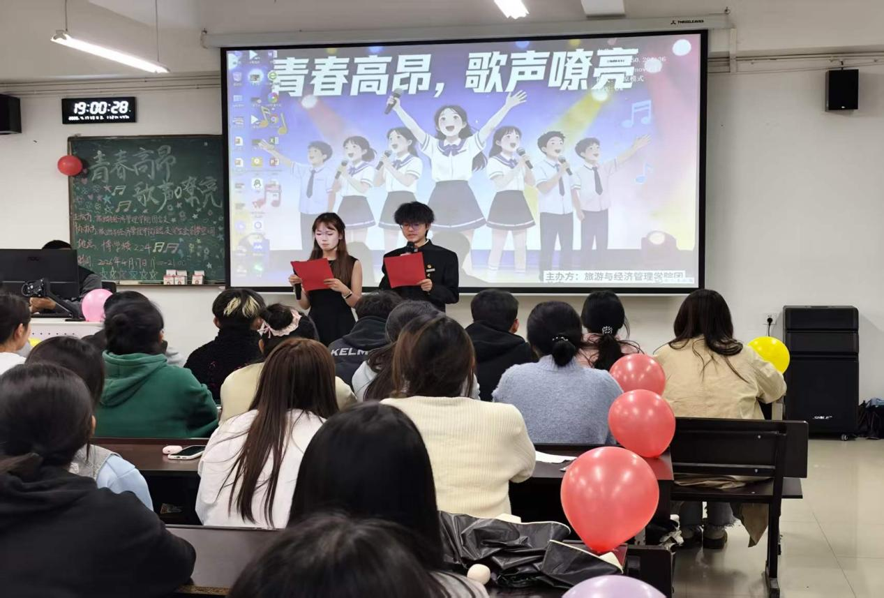 青春是人生最绚烂的篇章,歌声是情感最真挚的表达。为进一步丰富校园集体文化生活,营造积极向上、朝气蓬勃、健康文明的文化氛围,2026年4月17日,旅游与经济管理学院团总支在博学楼224举办“青春高昂,歌声嘹亮”主题歌唱比赛。