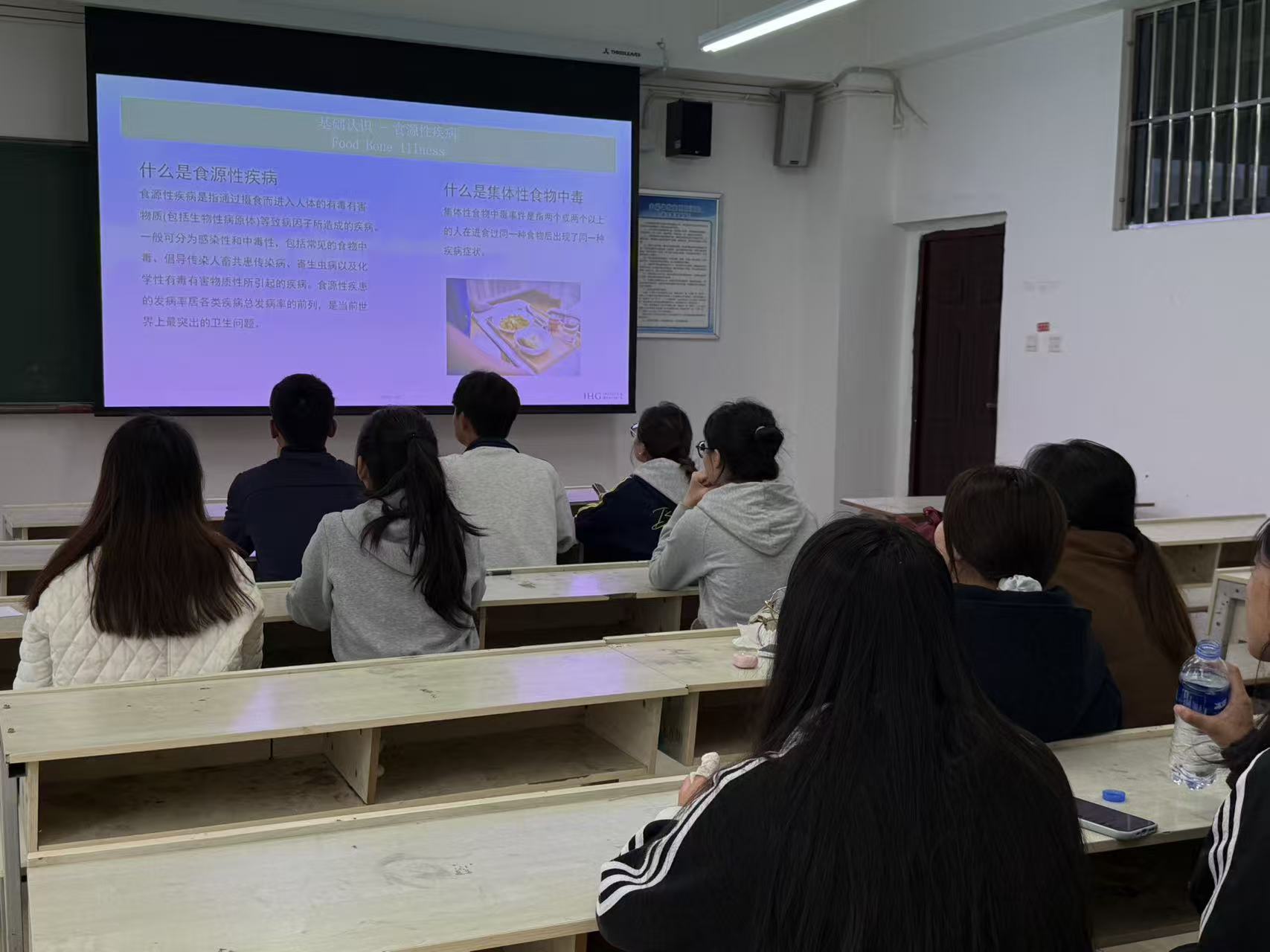 李专员首先以网上公开报道的食品安全事件为导入,生动诠释了食品安全的重要意义;然后,她结合酒店食品卫生专员工作岗位,详细介绍了酒店行业中食材采购、收货、储藏保管、解冻烹饪等各环节中的食品安全知识。最后,她强调:食品安全是酒店运营的生命线,从业人员必须时刻保持“底线思维”,以高度的职业敬畏感对待食品安全的每一个环节。通过学习,学生对食品安全法规有了更直观、深刻的认识。