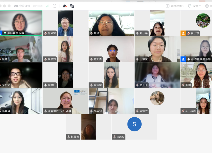 10月9日晚,主办方组织开展了线上启动会。联合国教科文组织亚太地区世界遗产培训与研究中心上海分中心项目专员刘真、丽江古城遗产文化研究院院长施寿增、我校旅游与经济管理学院党总支副书记李继红参加会议。美丽乡愁公益团队联合创始人、同济大学城乡遗产保护博士生崔家滢为志愿者详细介绍了联合国教科文组织世界遗产志愿者倡议(WHV)及“涟漪行动”的项目背景,以及创变营的整体安排、关键时间节点及各阶段任务要求,明确了各小组的核心任务。
